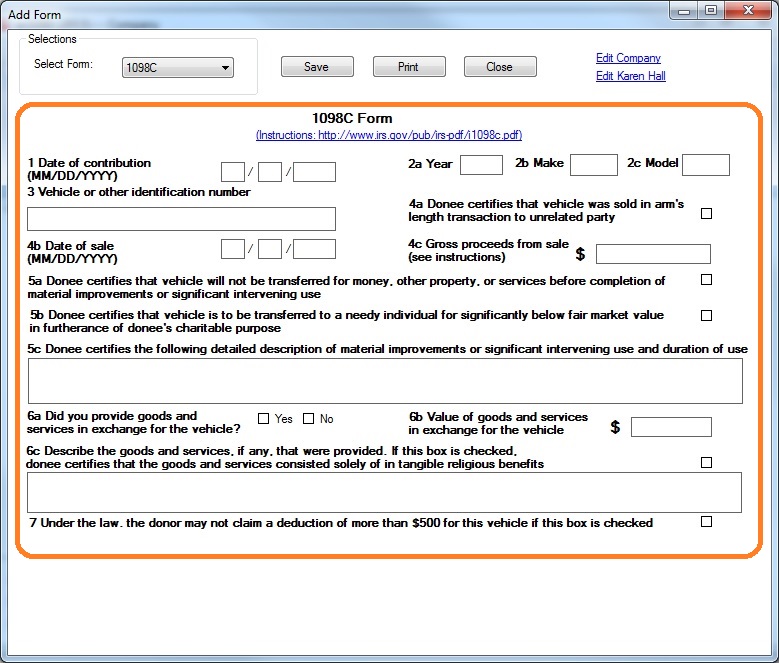 How to Print and File Tax Form 1098-C, Contributions of Motor Vehicles, Boats, and Airplanes
