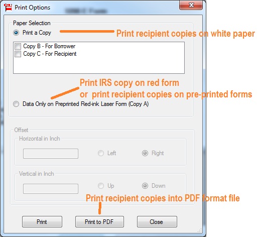 If you need to print multiple IRS copies for different recipients at the same time, please check this article on how to multiple copies of 1099s form at the same time