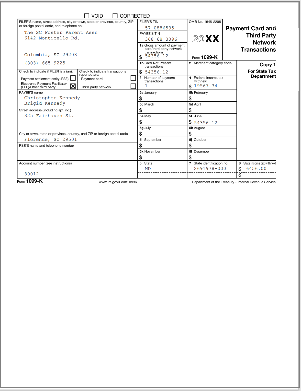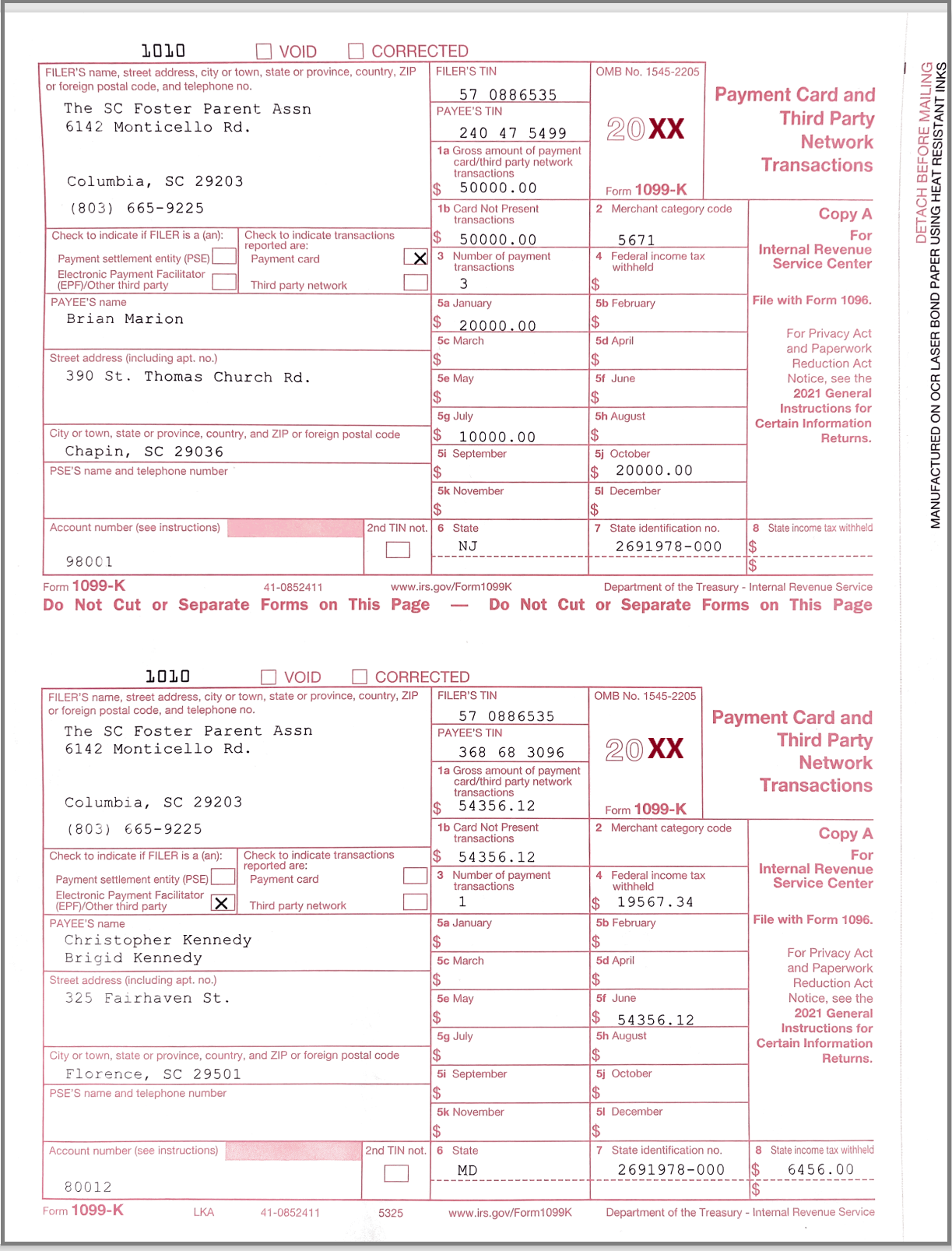 • Sample 1099-K copy A for IRS