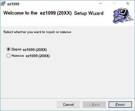 If you see the repair and remove screen, that means you already installed the same or newer version on your computer. You need to uninstall ez1099 before you re-install it.
