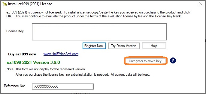 - Click ez1099 software top menu "License Key" then "Input License Key" to access the key input screen.