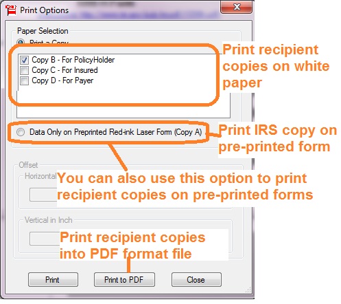 If you need to print multiple IRS copies for different recipients at the same time, please check this article on how to print multiple copies of 1099s form at the same time