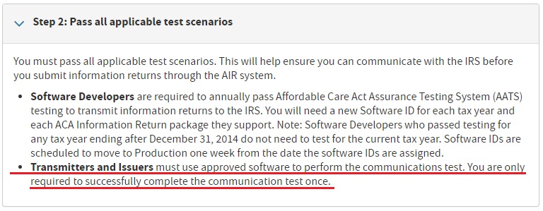 "Transmitters and Issuers must use approved software to perform the communications test. You are only required to successfully complete the communication test once."