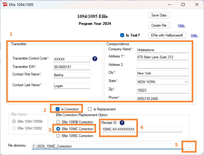 If you're using the built-in eFiling service within ez1095, simply click the "eFile with Halfpricesoft" button to submit your correction file directly.
