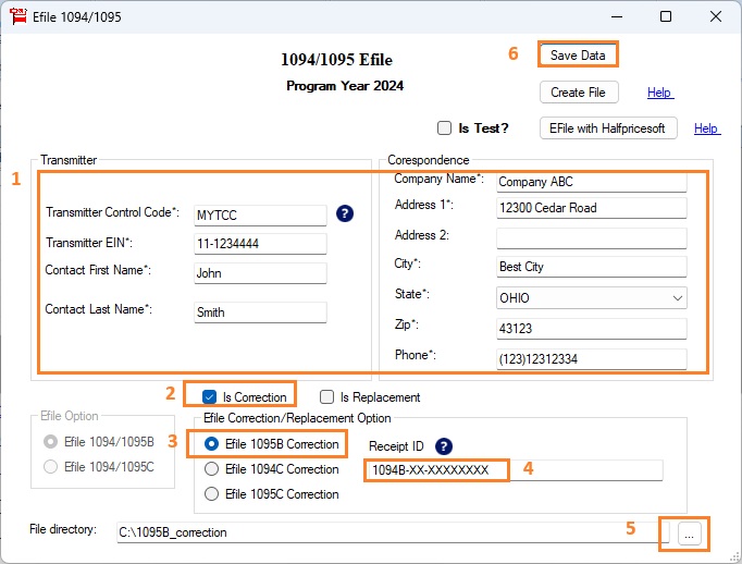 eFile with Halfpricesoft" button to submit your correction file directly.