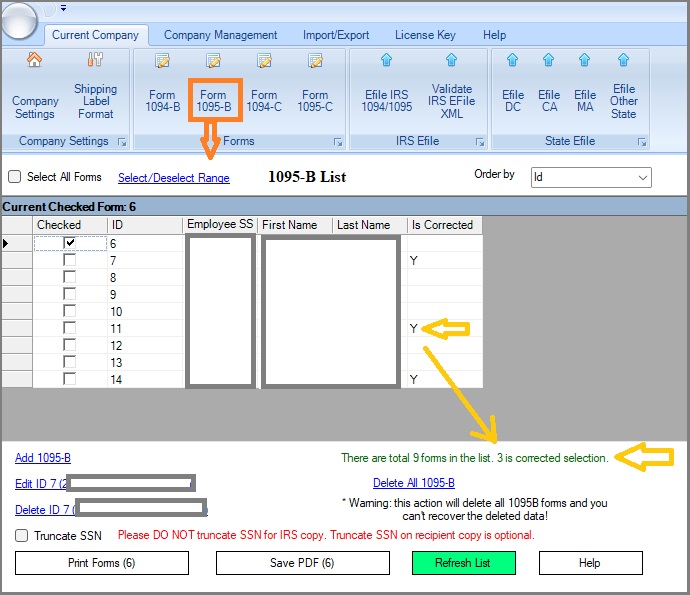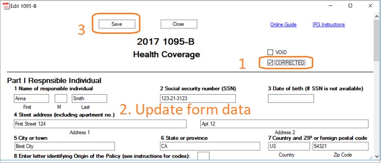 - Check the option "Efile 1095B Correction".