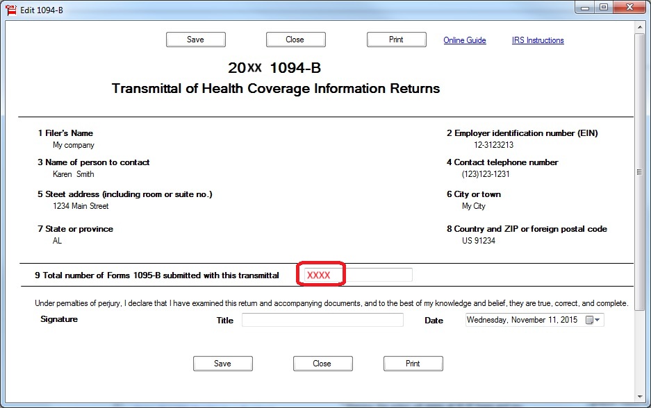 Click the top menu "File IRS 1094/1095" to open the eFile screen.