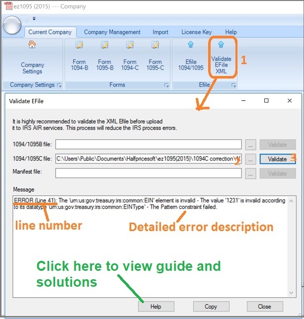 1.1 Start ez1095, set up company, enter form information and open the efile screen. (More information can be found from