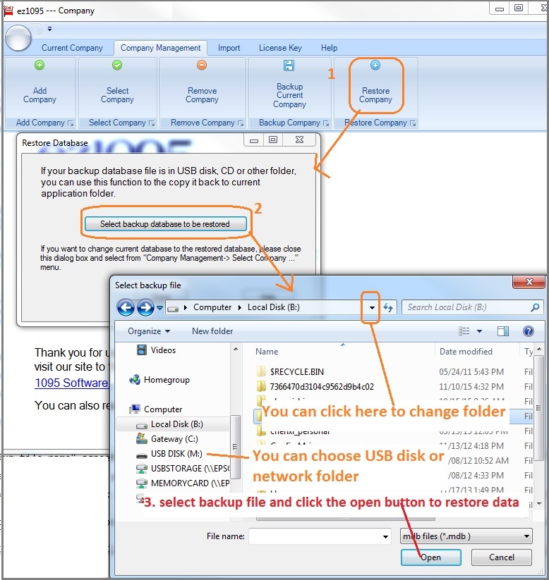 1.3 Start ez1095 2024 and restore the backup file by clicking the top menu "Company Management->Restore Company"