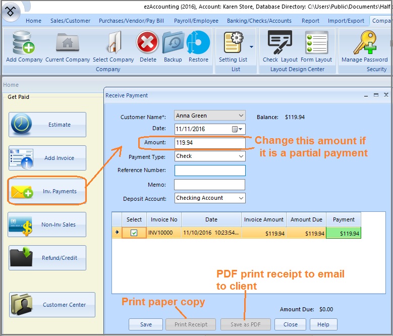 ezAccounting Software: How to Accept Customer Payments and Print Receipts