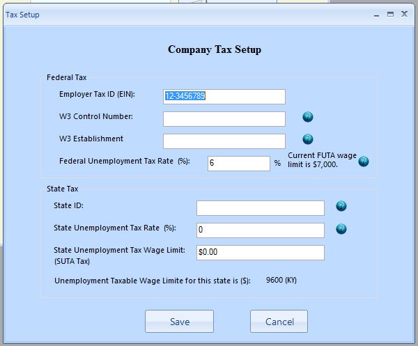 - W3 control number and W3 Establishment number (optional): These two fields will be used for W2 and W3 forms only.