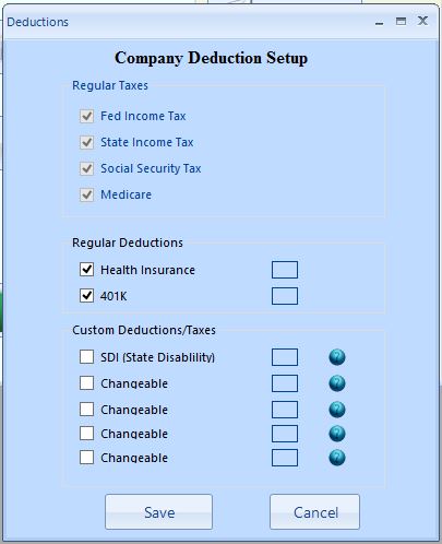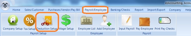 You can click the top "Employee" tab, then click the sub menu "Deduction Setup" to open the company deduction setup screen