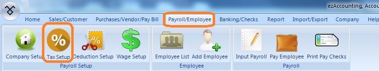 You can click the top "Employee" tab, then click the sub menu "Tax Setup" to open the company tax setup screen