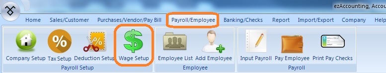 You can click the top "Company" tab then click the sub menu "Wage Setup" to open the Company Wage Setup Screen