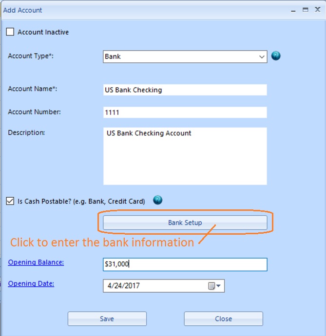 2.2 Click the button "Bank Setup" to set up bank information.