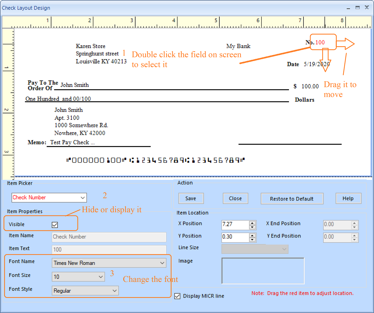 With ezAccounting software, you can print professional checks on blank stock or pre-printed check paper. Here is the instruction about how to customize a field on check.