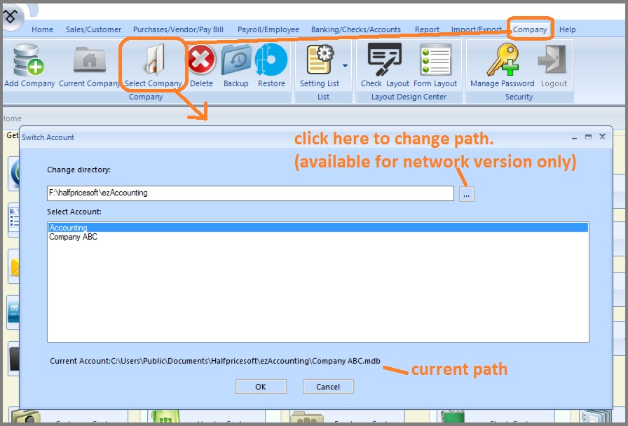 2. If you are using network version of accounting software, please make sure your server is still running and you still have the permission to access network data folder