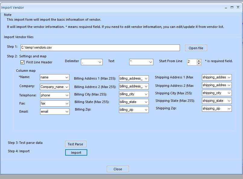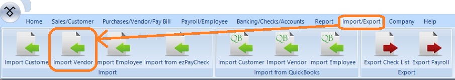 3.1 Click the top menu "Import/export" then "Import Vendor" to view the import vendor screen.