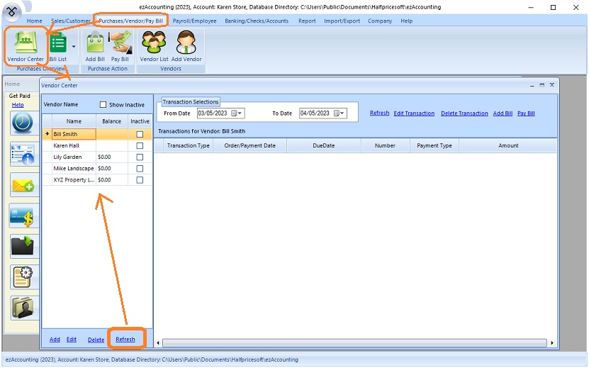 Step 4: Go back to Vendor Center, refresh data and view vendors