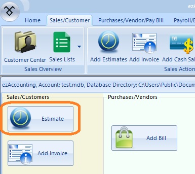 Step 1: Start ezAccounting application, click the short cut button "Estimate" to add a new quote or estimate.