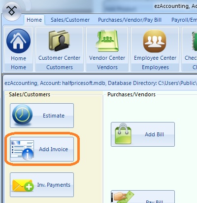 Step 1: Start ezAccounting application, click the short cut button "Add Invoice" to add a new invoice.