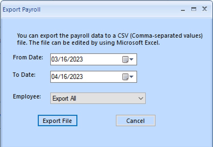 3.2. Select Date Range and Employee(s), click the button "Export File".