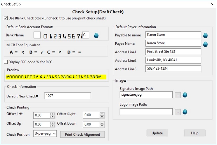 | - You can customize any field on check - Customize check layout with different font - Add extra text labels and lines on checks | Yes | Yes |