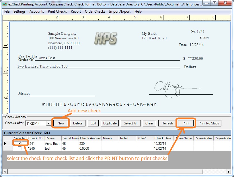 Go back to the main page. Click the New button to add a check. Select this check from the check list and click the Print button to print your check