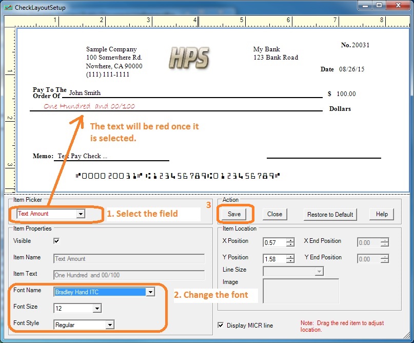 How to customize font of a text field on bank check