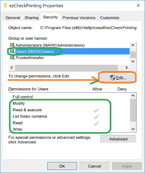 What Permissions Do I Need to Run ezCheckPrinting Correctly