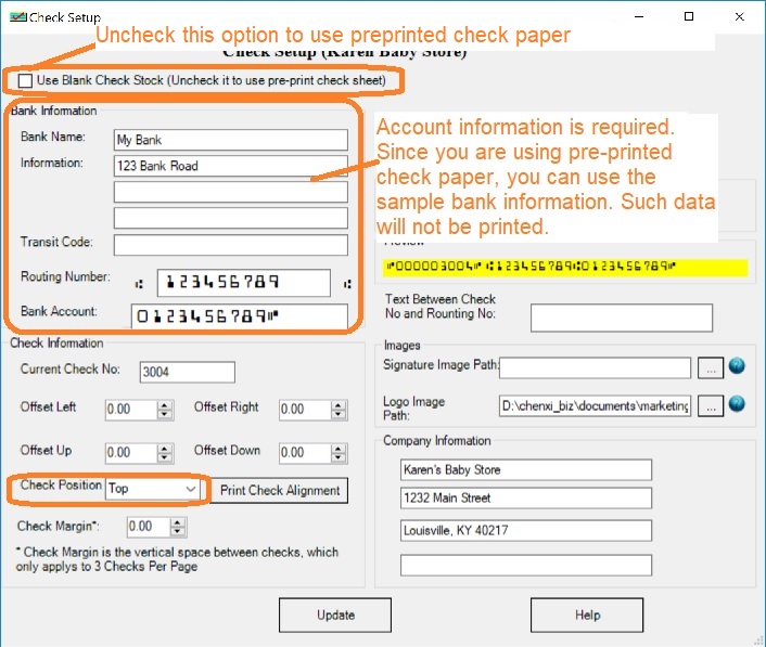 Click to view larger image Step 1.1: Set up ezCheckPrinting to use pre-printed check paper