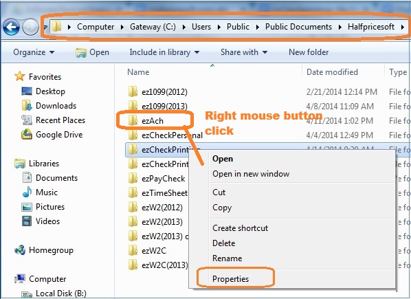 4.2 Select the ezCheckPrinting folder by mouse, right click.