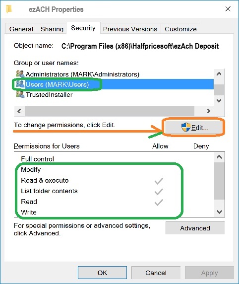 4.3 From the pop-up menu, select Properties, and then in the Properties dialog box click the Security tab. You need to have at least read, write and execute permisson.