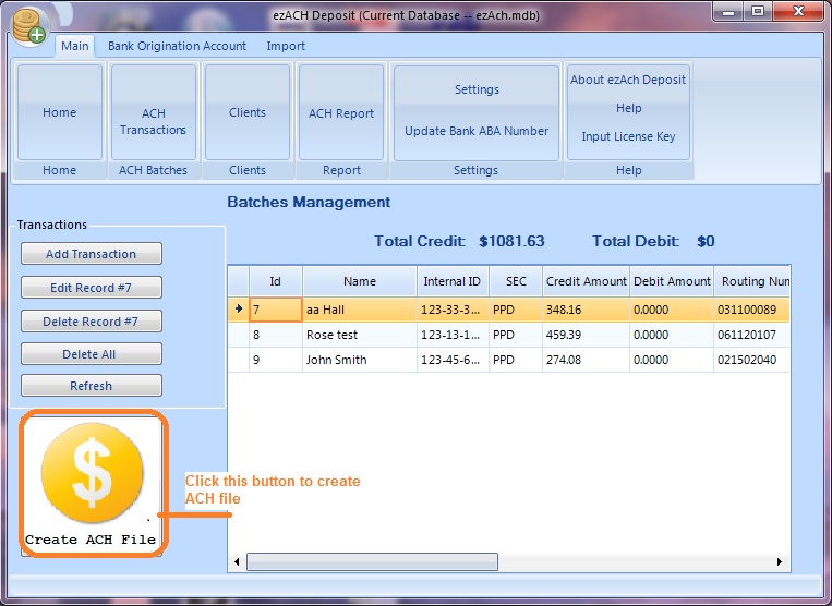 After you import the checks, you can review them from transaction list by clicking the top menu "Main->ACH Transactions".