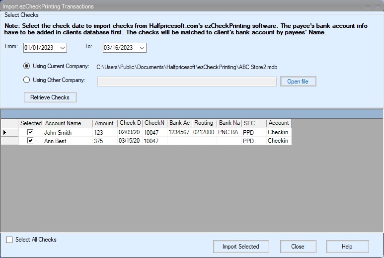Step 1: Import Transaction(s) from ezCheckPrinting software