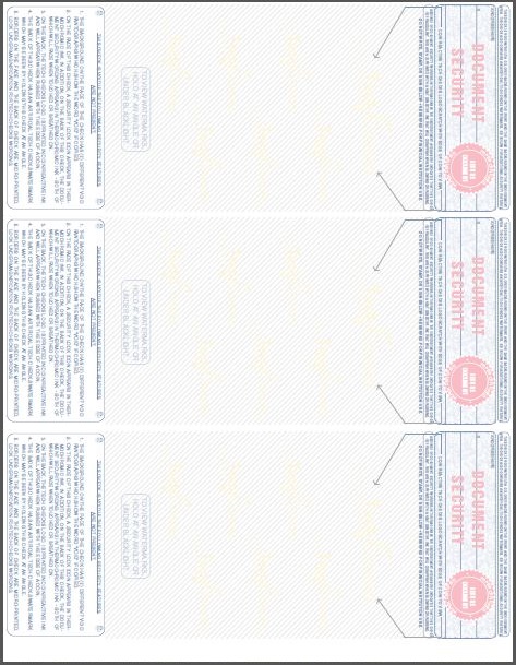 | 3-per-page Format Business Blank Check Stock Sheet size: 8-1/2" x 11"; Perforated Paper at 3-1/2", 7" to the top; Color:Blue; Form 3000 Business Standard