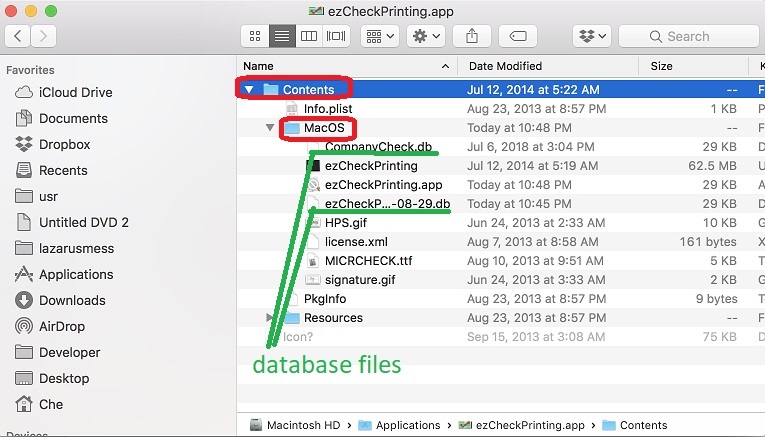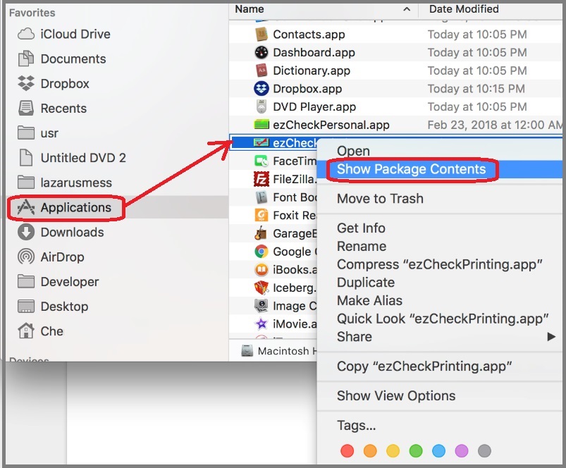 2.2.2. select ezCheckPrinting, right click mouse button, select "Show Package Contents";