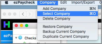 1.1 Click ezPaycheck top menu "Company" then "select company" to change the current account.