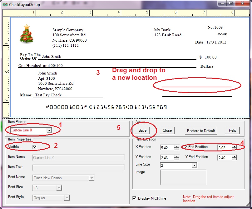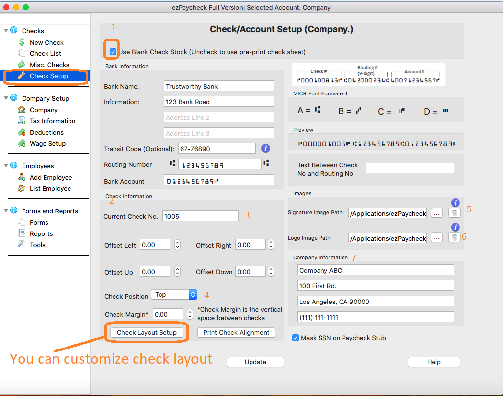 You can click the Check Layout Setup button to customize your check layout.You can change the font sizes, change logo position, add new labels and lines