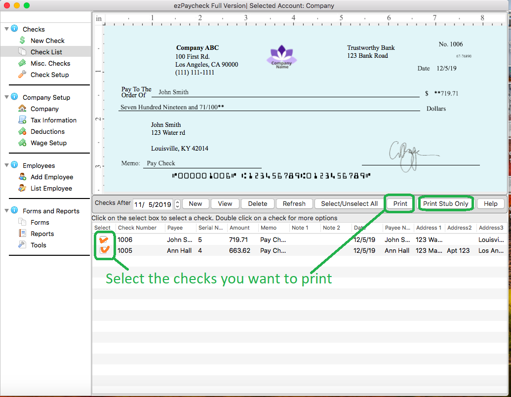 2.1 You can select multiple paychecks from list and click the Print button to print paychecks together.