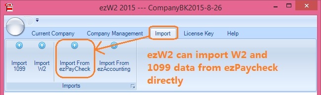 - ezW2 can import W2 and 1099 data from ezPaycheck in a few clicks.