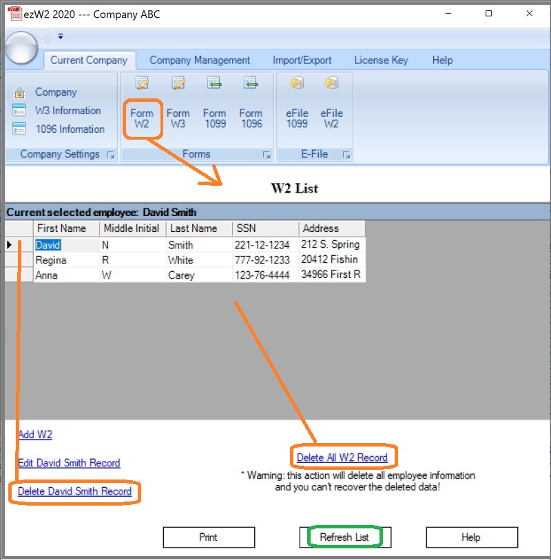 2.2 You can click the link "Delete All W2 Records" to remove all W2 forms from list.