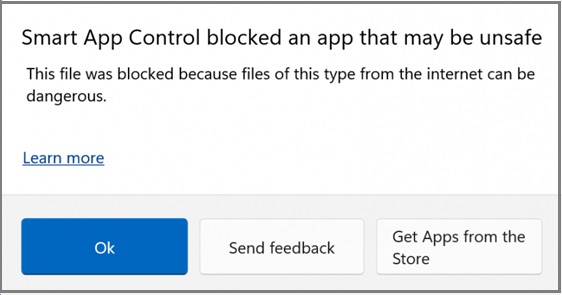 "Smart App Control blocks an app that may be unsafe"
