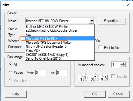 1.3. Select "Microsoft Print to PDF" (or a PDF conerter) to print paychecks.