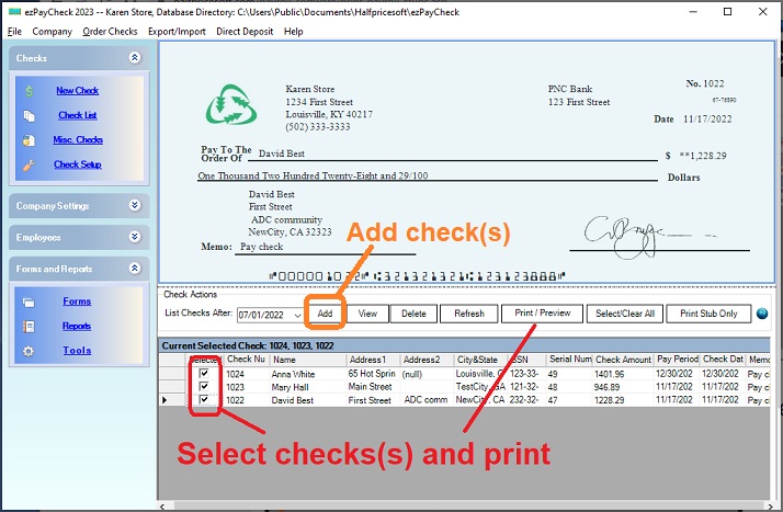 1.1. Start ezPaycheck, click the "Add" button to add new check(s).