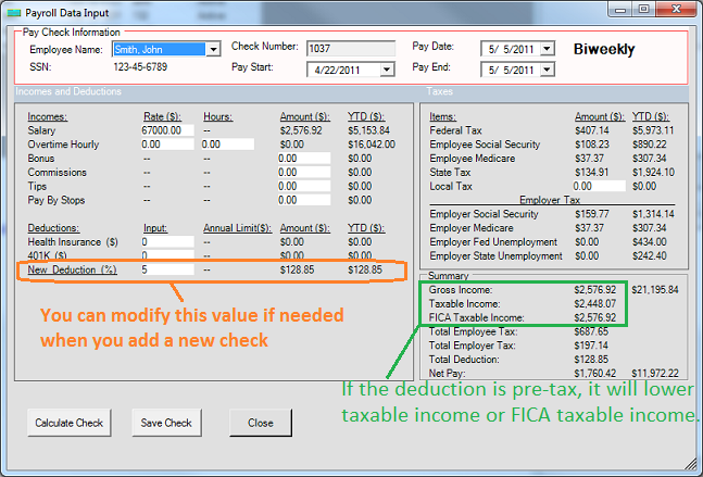 - If you added a new pre-tax deduction (because you check the exempt option in step 1.5) , you will see lower taxable income or lower FICA taxable income on screen.