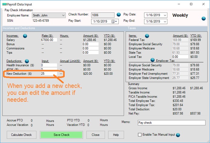 ezPaycheck: How to add a new payroll deduction and withhold it from each paycheck automatically