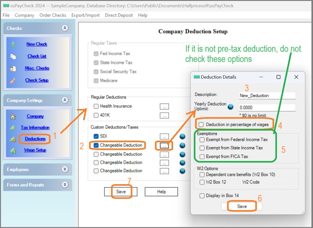 2.1.7. Click the "Save" button on Company Deduction Setup screen to update the database.