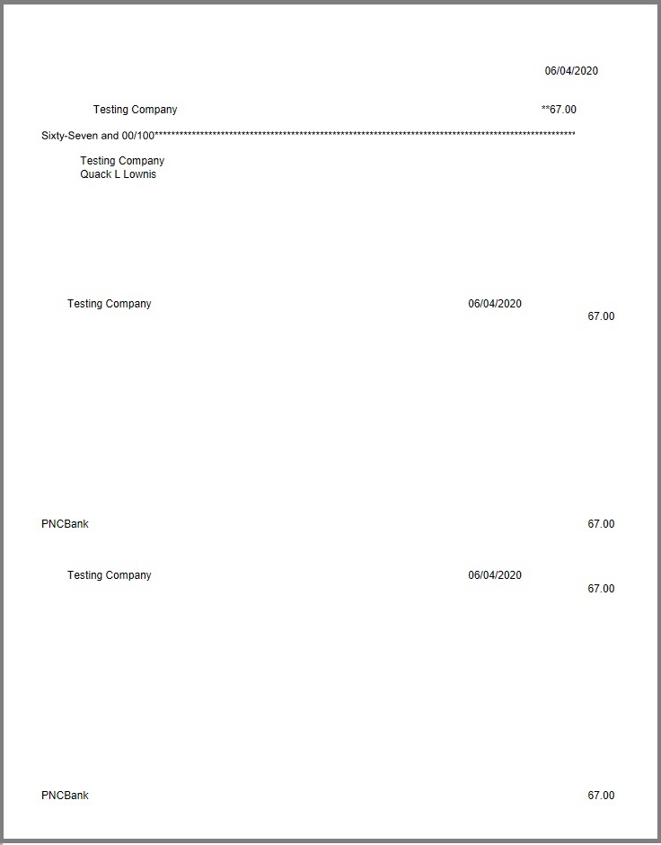 Print this QuickBooks check with a real printer (not QB virtual printer) on white paper and review the data.