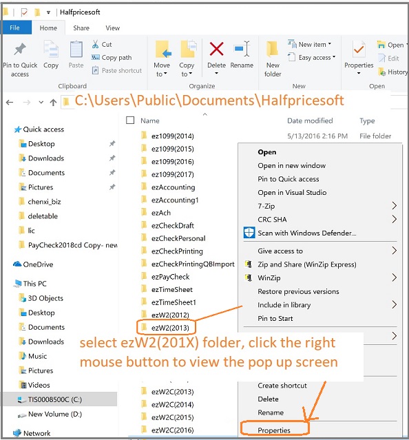 4.2 Select the ezW2(20XX) folder by mouse, right click.